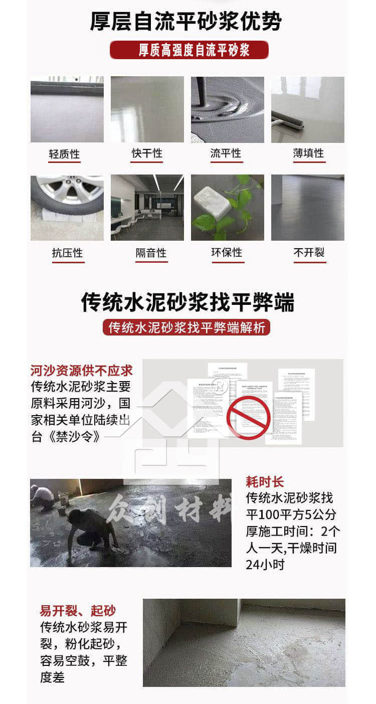 高強(qiáng)度自流平砂漿是一種新型的樓板保溫找平一體系統(tǒng)和地暖回填材料。它以水泥、高強(qiáng)水泥、石膏復(fù)合做為膠凝材料,添加微晶、級配骨料、填充料、可再分散乳膠粉、及各種高分子功能添加劑等混合而成,是一款新拌時(shí)流動性好,早期強(qiáng)度高,施工方便,平整度高,不易開裂的新型材料。該材料可同時(shí)做為樓板保溫層與面層。